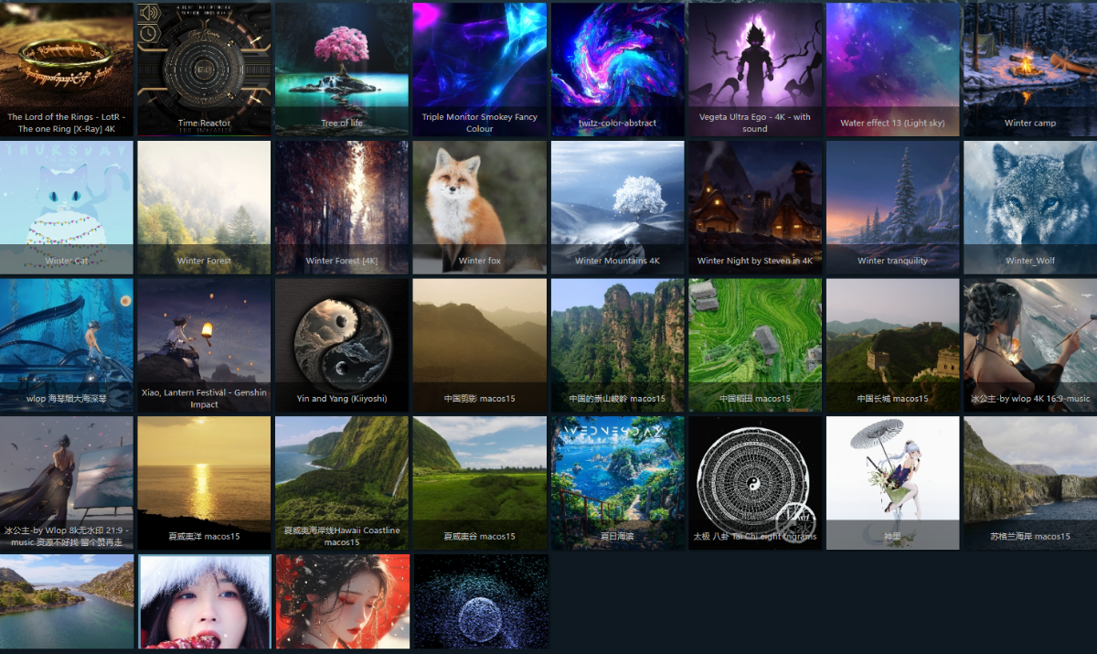 多显示器支持:支持多显示器设置不同的动态壁纸,并可以针对每个屏幕设置特定的壁纸。