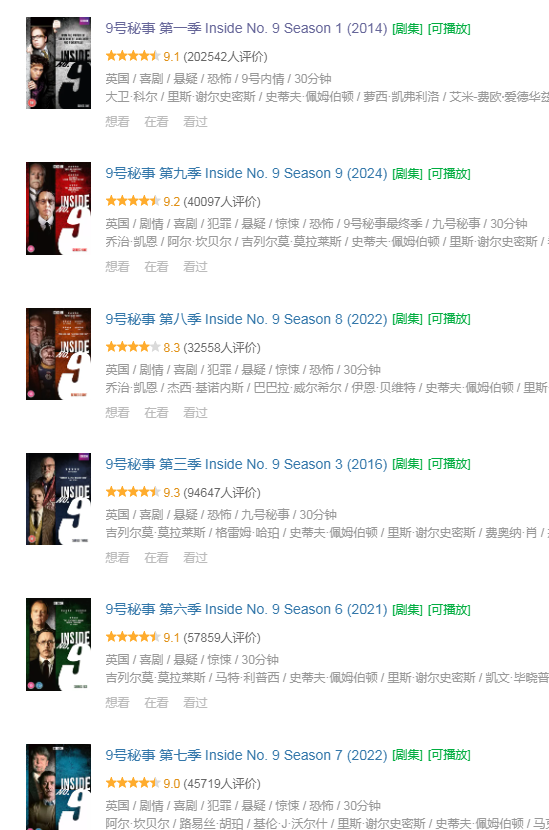 6、【高分经典英剧】9号秘事(2014)9季全[4K+1080P][内嵌中英字幕]【50G】[附万圣节特辑]免费观看全集高清网盘资源